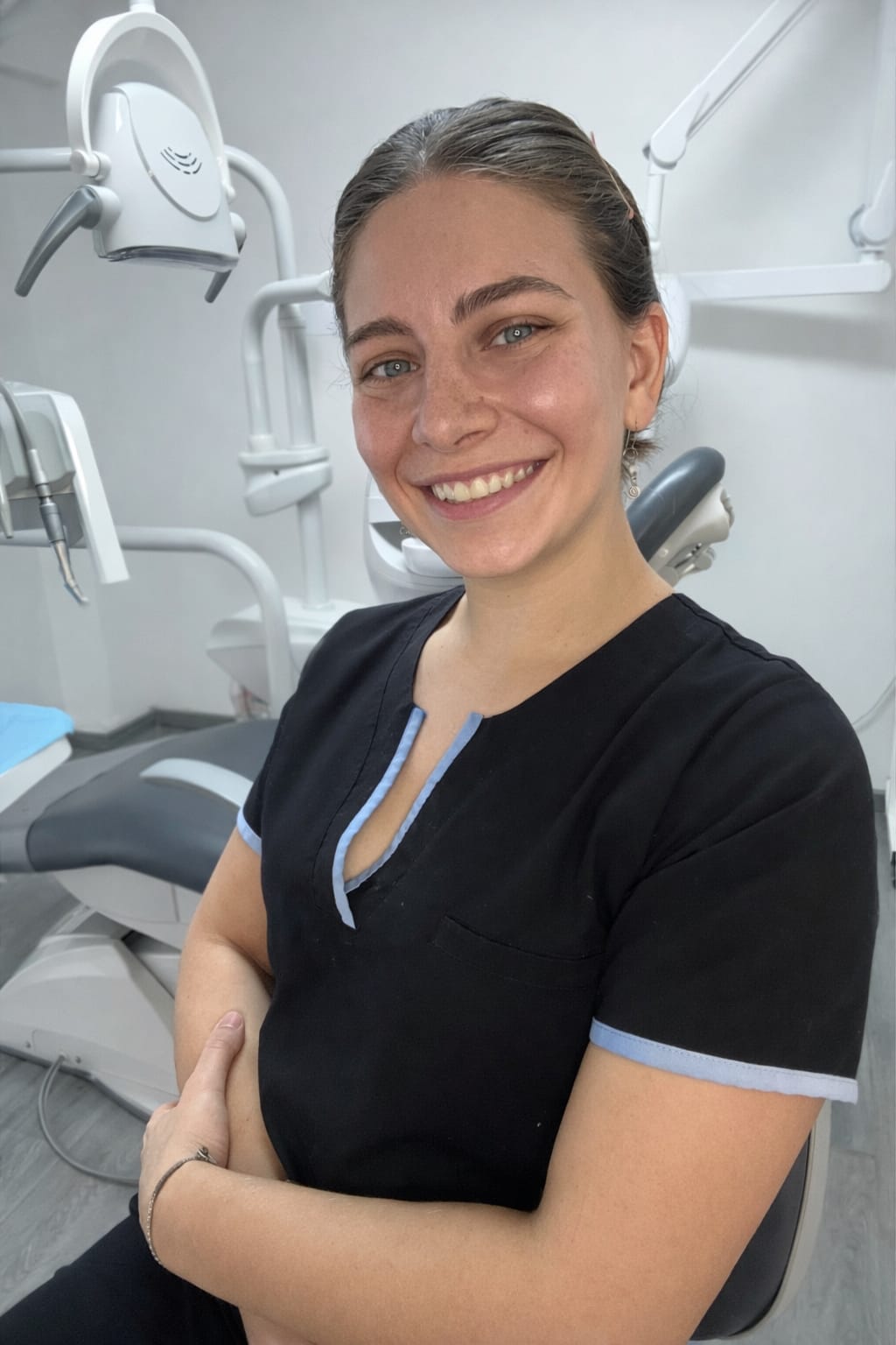 Junto a nuestra asistente Delfina, conformamos un equipo comprometido con tu bienestar. Nos tomamos el tiempo necesario para cada consulta, porque sabemos que una buena experiencia dental marca la diferencia.